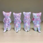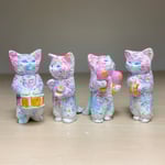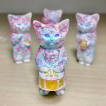 Acrylic and metallic paint on 2.5” vinyl cat figure with musical instrument